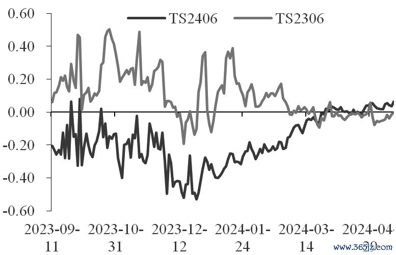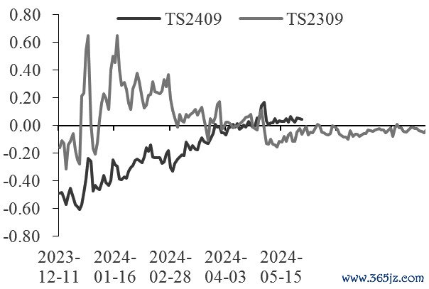 图为TS当季合约与去年同期主力合约的净基差走势
