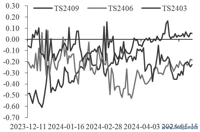 图为TS近三个合约的净基差走势