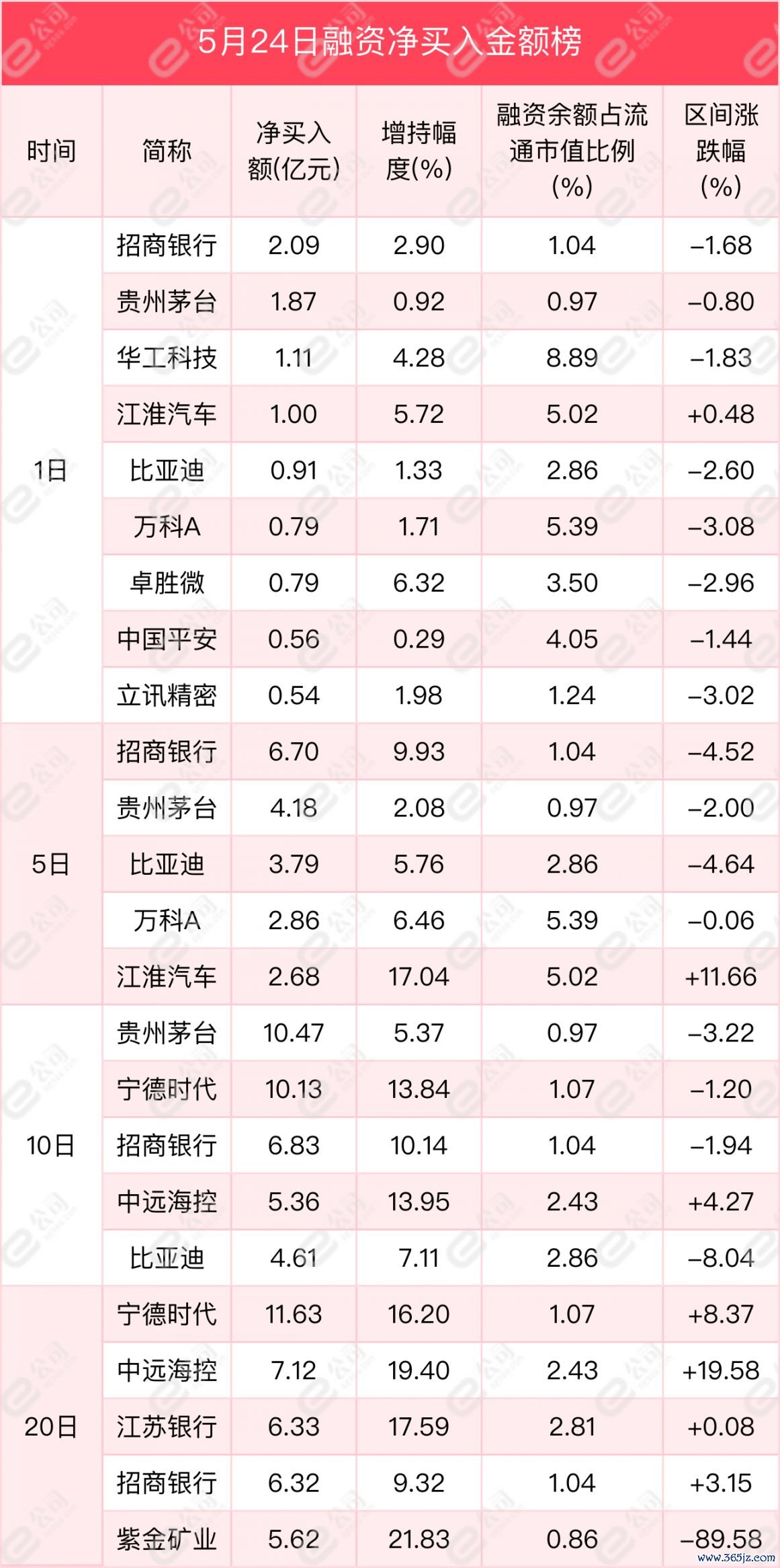 从买卖金额来看,招商银行、贵州茅台、华工科技获融资净买入金额居前,分别为2.09亿元、1.87亿元、1.11亿元,增持幅度分别为2.9%、0.92%、4.28%。