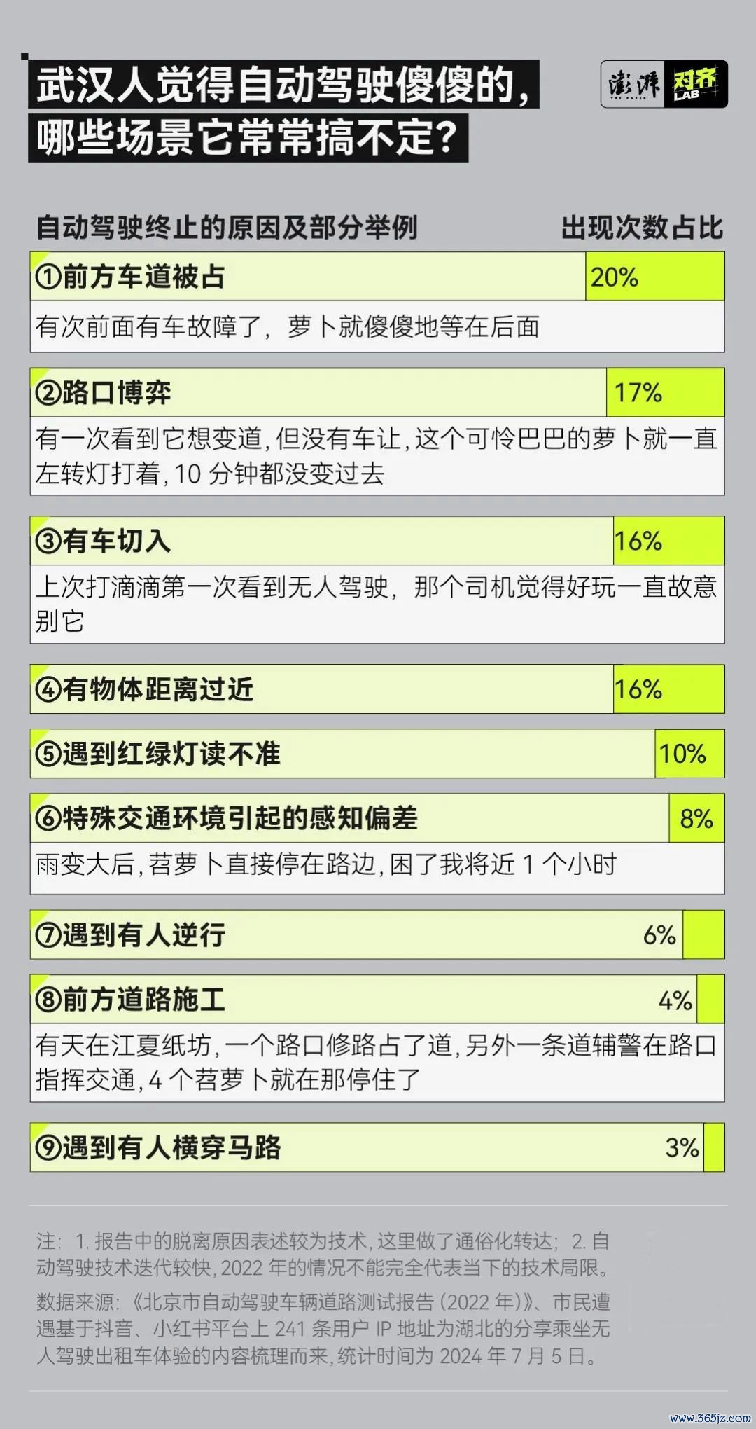 武汉 271 路的一位公交车司机下车查看堵住道的自动驾驶出租车,图:澎湃美数课